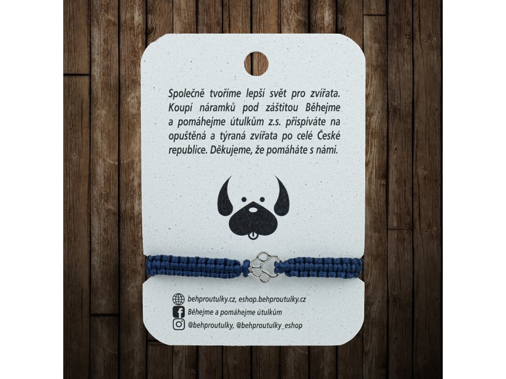 Dámský náramek tmavě modrý spletený se stříbrnou tlapkou