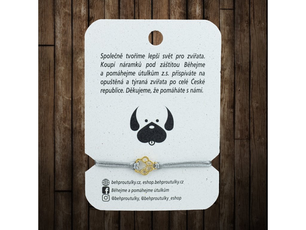 Dámský náramek se zlatou tlapkou. 100% český výrobek s příběhem. Náramek nám šijí chráněné dílny, jejichž cílem je integrace osob se zdravotním postižením bez rozdílu věku, typu a stupně postižení do společnosti. Pomáhá zdravotně postiženým a seniorům odhalit jejich potenciál a znovu se začlenit do společnosti.